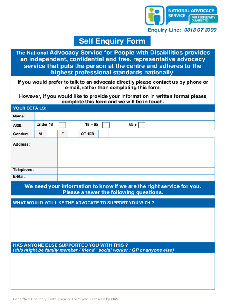Fill out your self enquiry form online with pdfFiller!