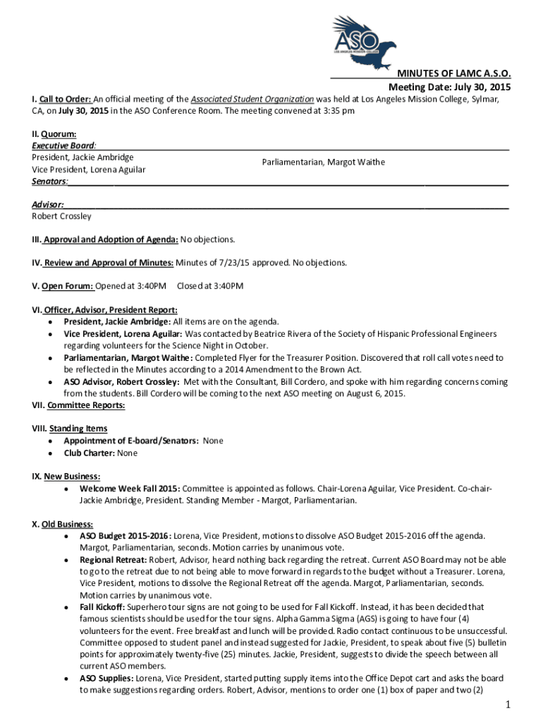 Get the free Associated Student Organization (ASO)