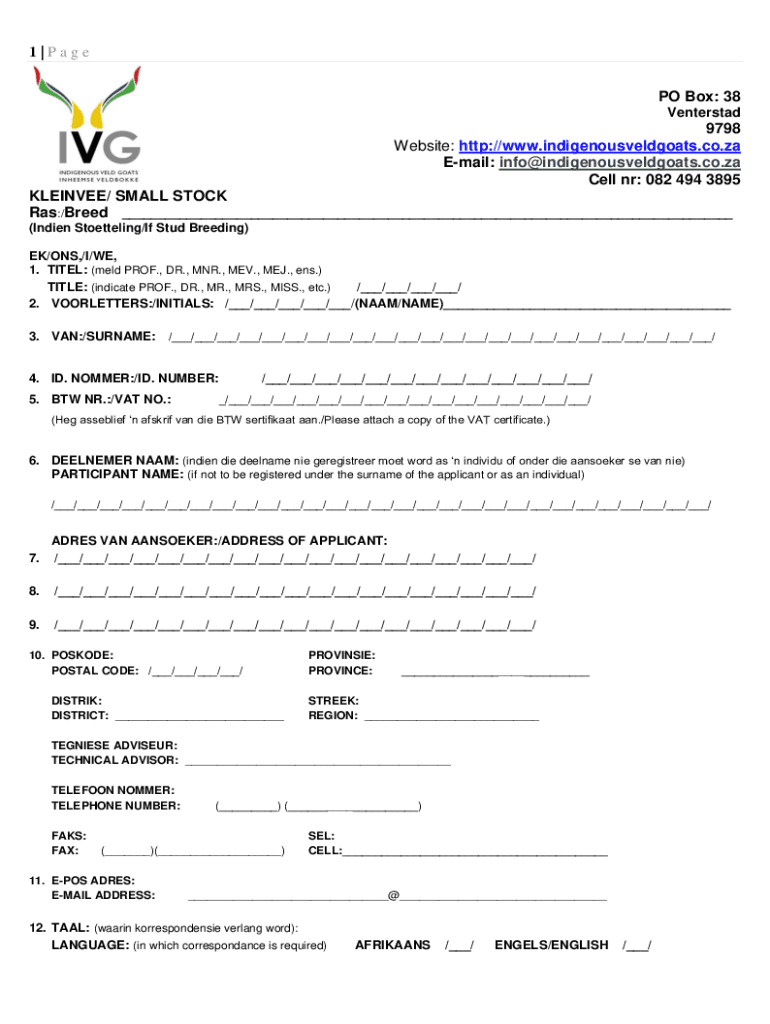 Indigenous Veld Goats Ivg is not the form you're looking for?Search for another form here.