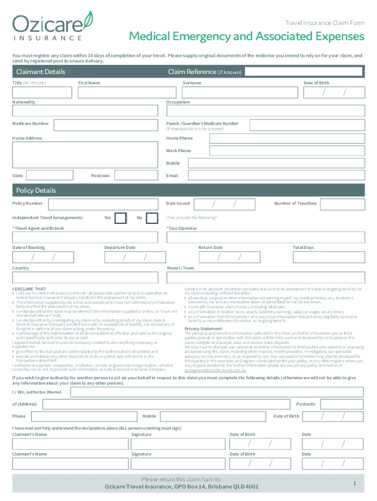 Travel Insurance Claim FormMedical Emergency and Associated Expenses You must register any claim within 30 days of completion of your travel. Please supply original documents of the evidence you intend