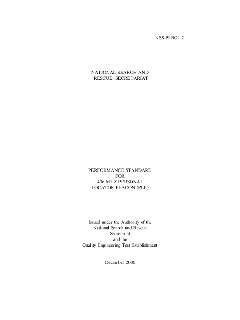 NSSPLBO12NATIONAL SEARCH AND RESCUE SECRETARIATPERFORMANCE STANDARD FOR 406 MHZ PERSONAL LOCATOR BEACON (PLB)Issued under the Authority of the National Search and Rescue Secretariat and the Quality