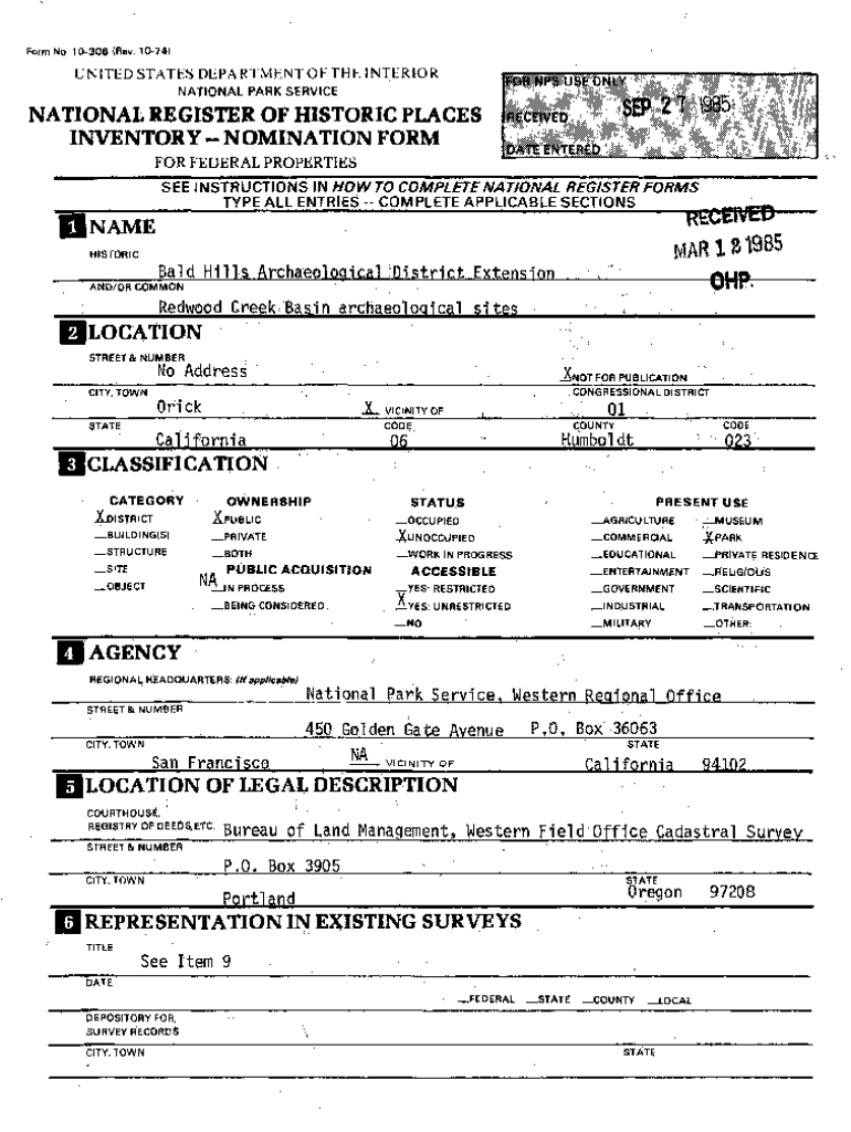 Form No. 10306 (Rev. 1074)UNITED STATES DEPARTMENT OF THE INTERIOR NATIONAL PARK SERVICENATIONAL REGISTER OF HISTORIC PLACES INVENTORY NOMINATION FORM FOR FEDERAL PROPERTIES SEE INSTRUCTIONS IN HOW