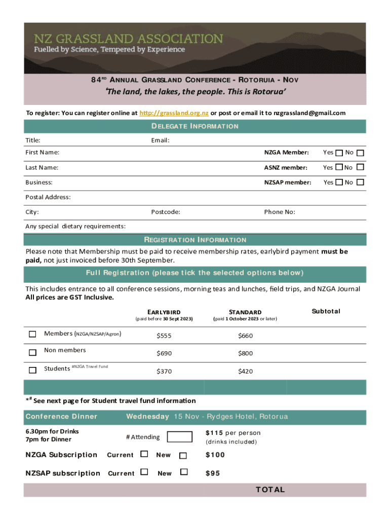 Get the free 84RD ANNUAL GRASSLAND CONFERENCE - ROTORUIA - NOV