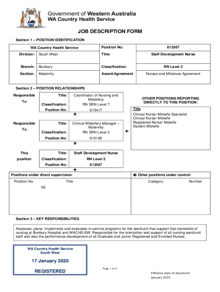 Division:Position No:613567South Westville:Staff Development Nurse Branch:BunburyClassification:Section:MaternityAward/Agreement