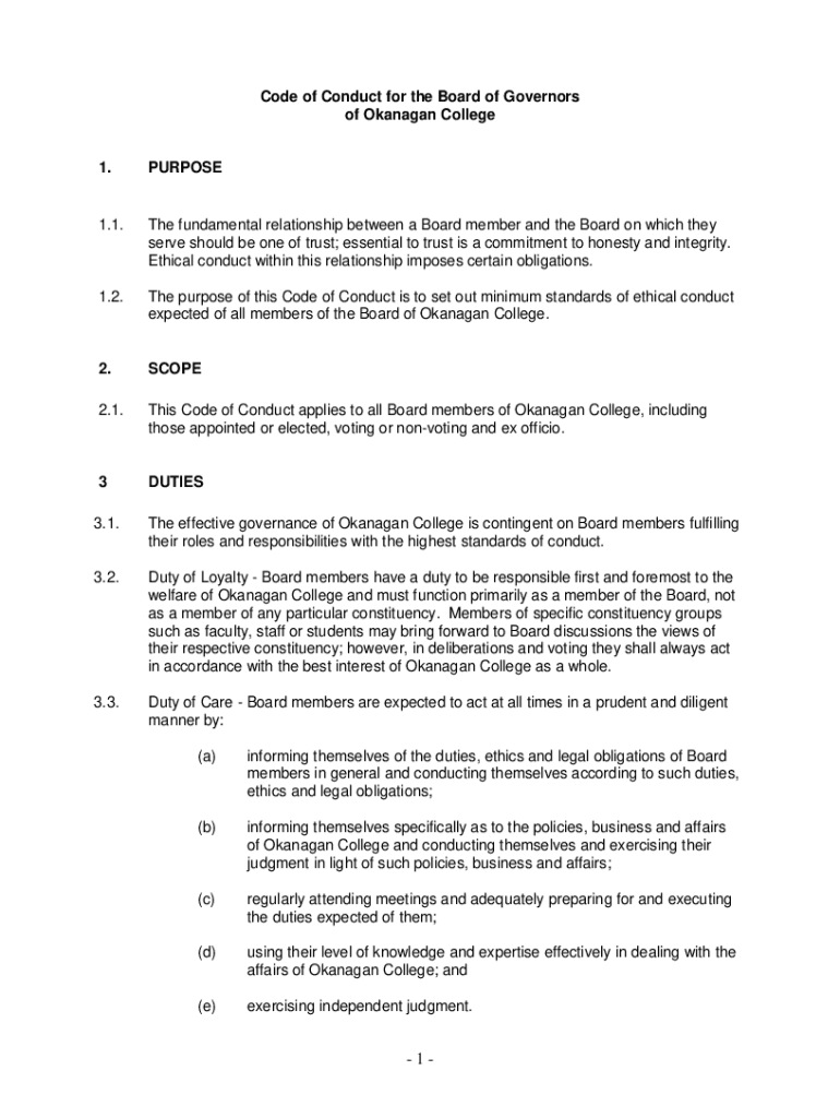 of Flanagan College1.PURPOSE1.1. The fundamental relationship between a Board member and the Board on which they