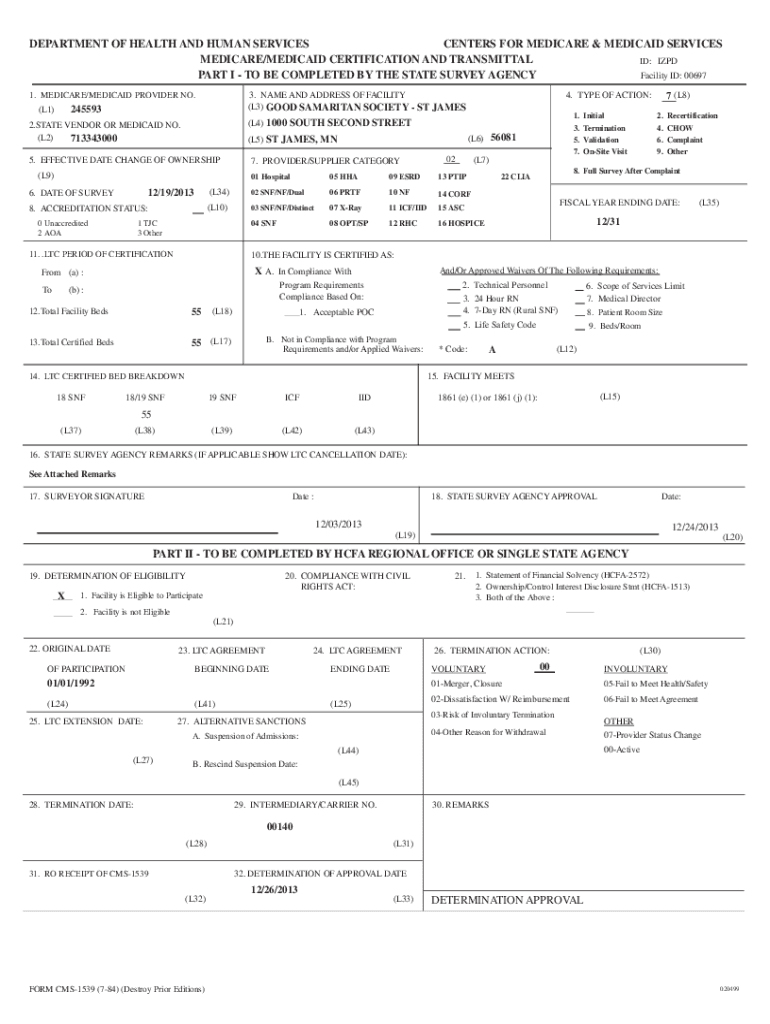 MEDICARE/MEDICAID CERTIFICATION AND TRANSMITTAL