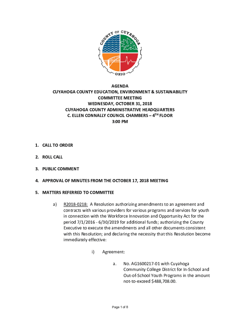 Get the free R2018-0218: A Resolution authorizing amendments to an agreement and