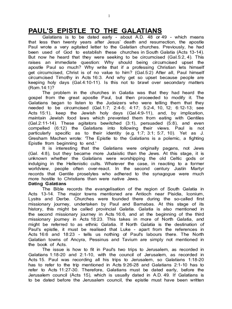 1PAUL\'S EPISTLE TO THE GALATIANS is to be dated early about A.D. 48 or 49 which means that less than twenty years after Jesus death and resurrection, the apostle Paul wrote a very agitated letter
