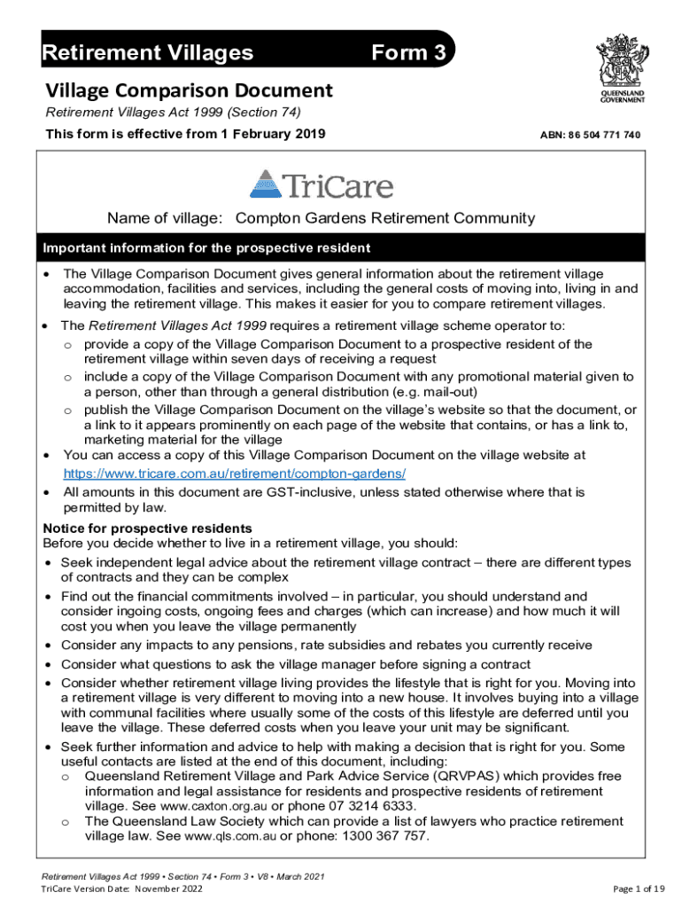 Retirement VillagesForm 3Village Comparison Document