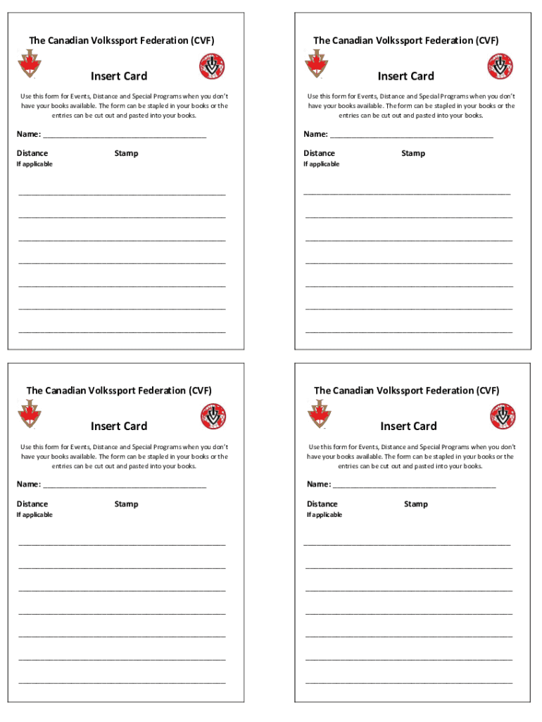 The Canadian Volkssport Federation (CVF)The Canadian Volkssport Federation (CVF)Insert Cardiovert Carouse this form for Events, Distance and Special Programs when you don't