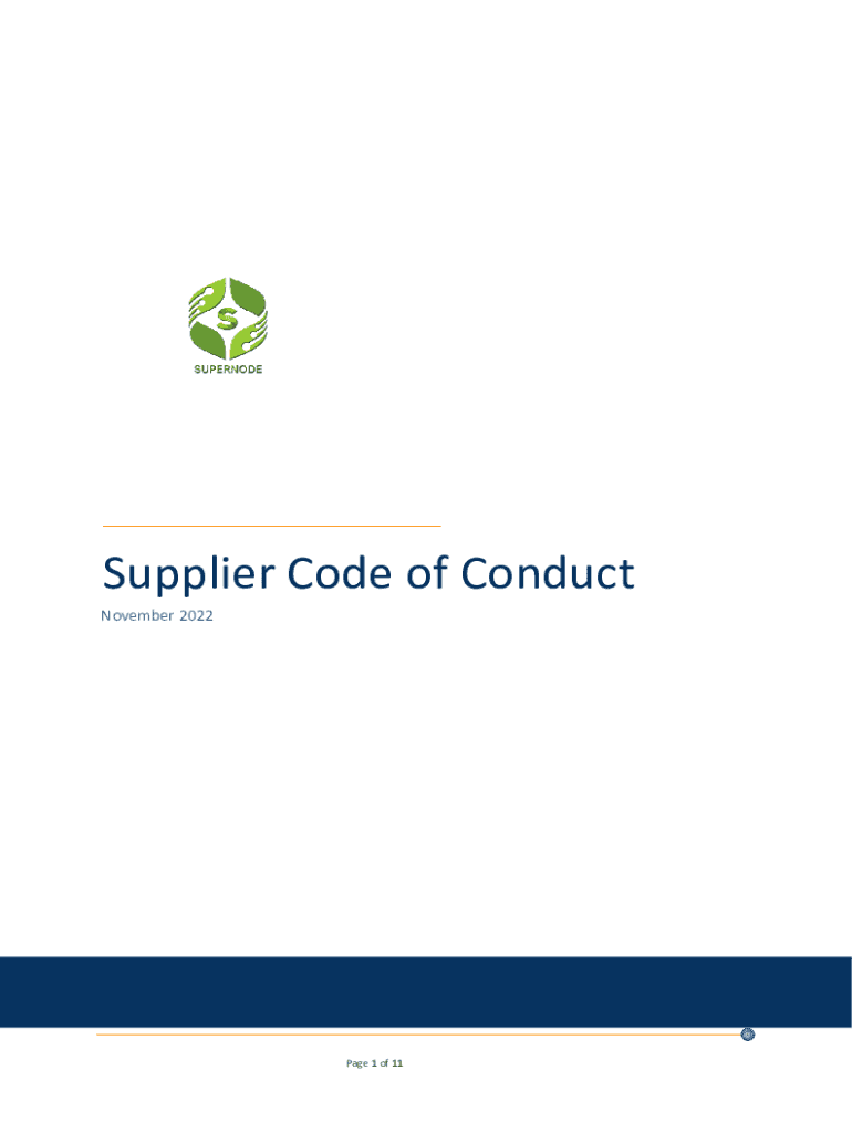 All suppliers and vendors who wish to engage in business with the company are required to file the supplier code of conductsupernode.