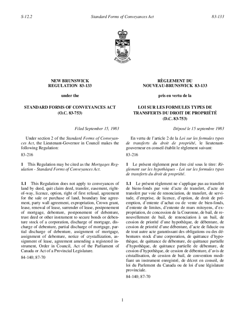 NOUVEAUBRUNSWICK 83133under theories en vert de standard FORMS OF CONVEYANCES ACT