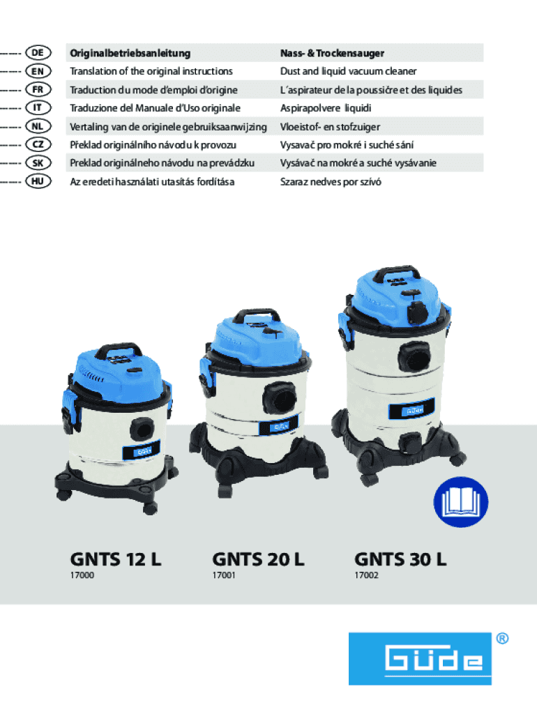 DEOriginalbetriebsanleitungNass & Trockensauger ENTranslation of the original instructionsDust and liquid vacuum cleaner FRTraduction du mode demploi dorigineLaspirateur de la poussire et des liquidesITTraduzione