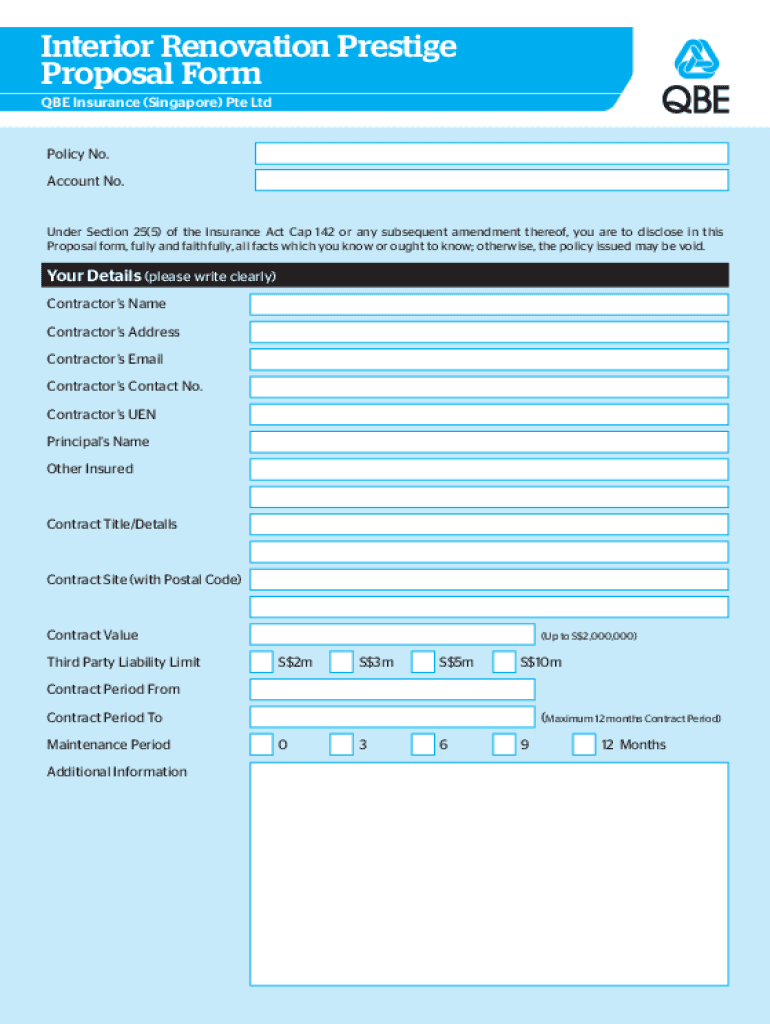 How to fill out interior renovation prestige proposal?