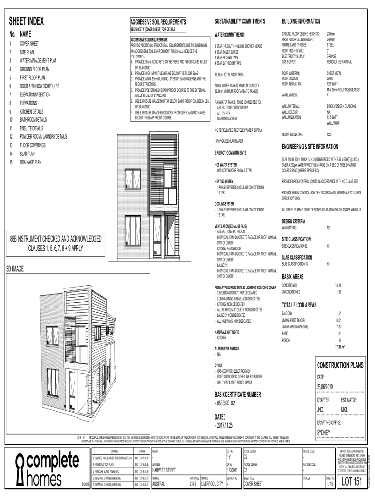 SHEET INDEXAGGRESSIVE SOIL REQUIREMENTSSUSTAINABILITY COMMITMENTSBUILDING INFORMATIONWATER COMMITMENTSGROUND FLOOR CEILING HEIGHT(S):