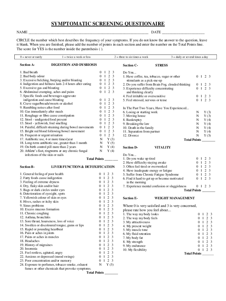 SYMPTOMATIC SCREENING QUESTIONNAIRE