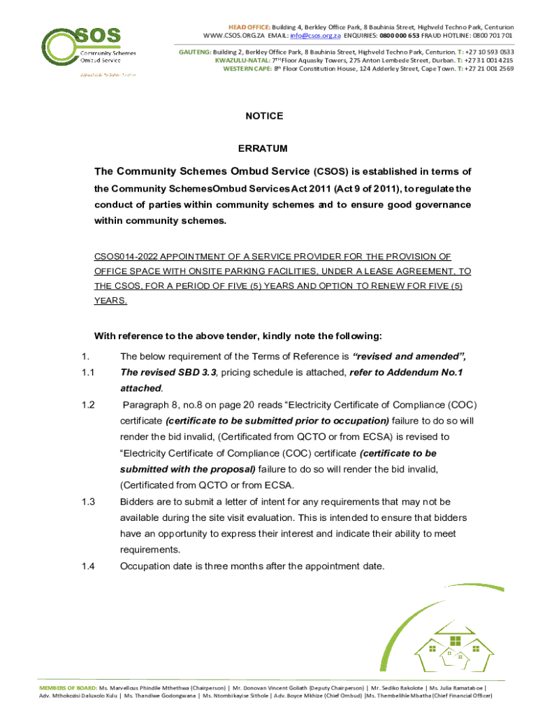 Get the free The Community Schemes Ombud Service ( ... - csos org