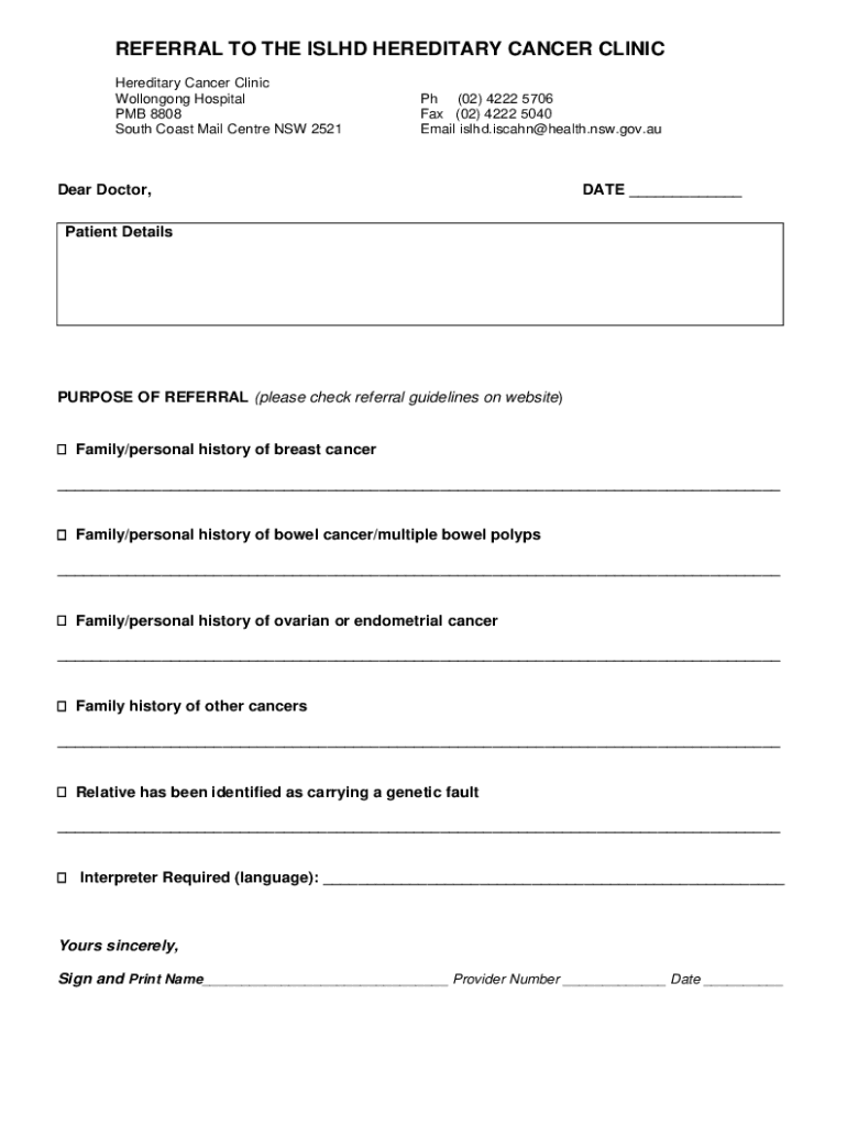 Get the free Referral to the Family Cancer Clinic, St Vincents Hospital Sydney