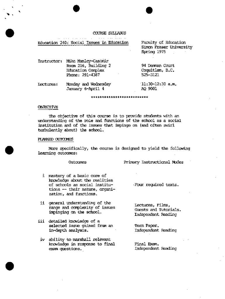 Education 240 Social Issues in \'EducationInstructor: Mike ManleyCasimir