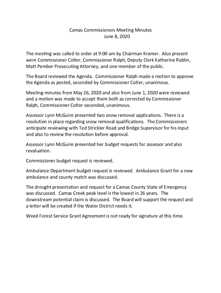 were Commissioner Colder, Commissioner Ralph, Deputy Clerk Katherine