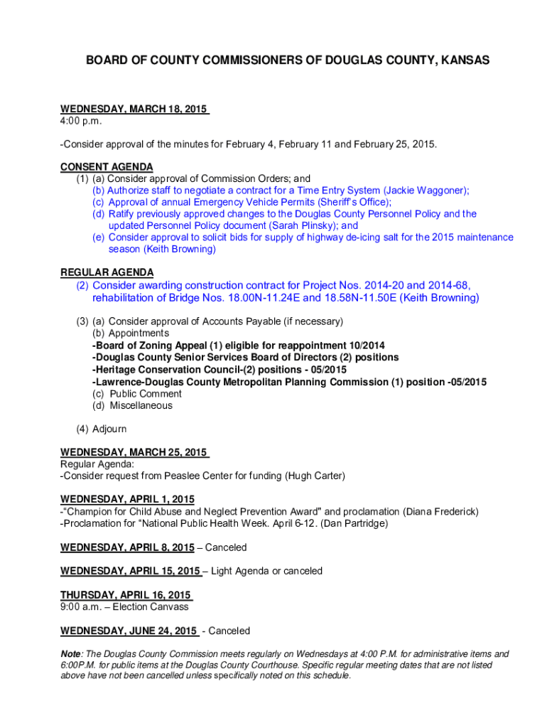BOARD OF COUNTY COMMISSIONERS OF DOUGLAS COUNTY, KANSASWEDNESDAY, MARCH 18, 2015