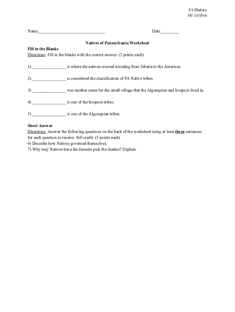 Mr. GrybosName___Date___Natives of Pennsylvania Worksheet