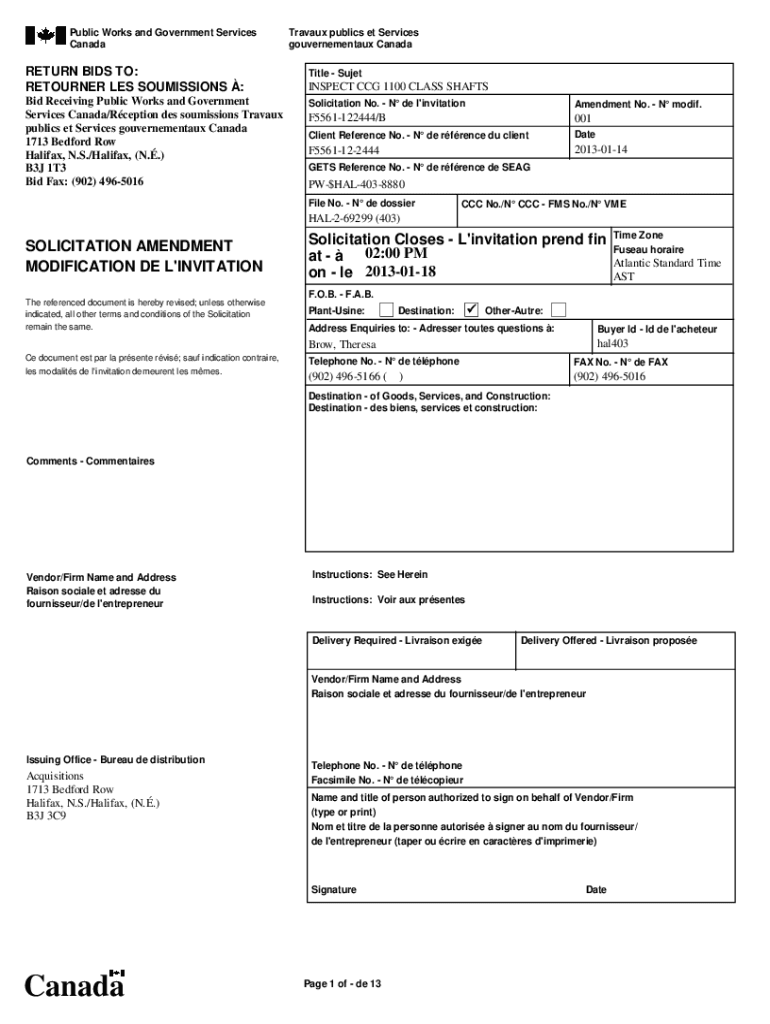 Public Works and Government Services CanadaTravaux publics et Services gouvernementaux Canada11RETURN BIDS TO: RETOURNER LES SOUMISSIONS :Title SujetBid Receiving Public Works and Government Services