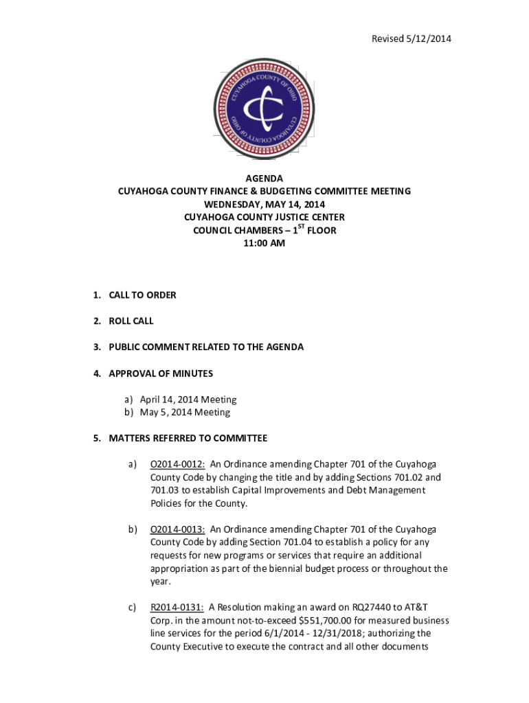 CUYAHOGA COUNTY FINANCE & BUDGETING COMMITTEE MEETING