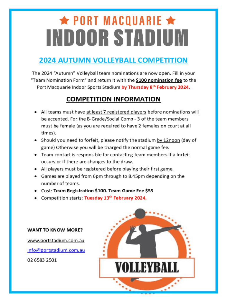 The 2024 Autumn Volleyball team nominations are now open. Fill in your