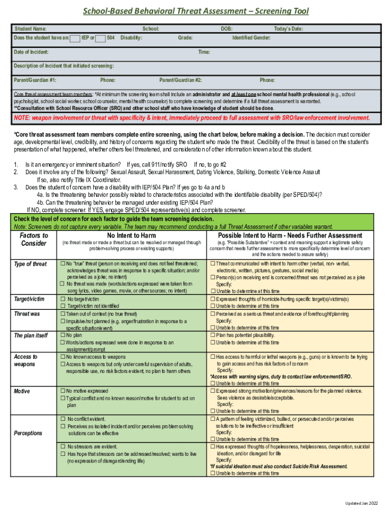 Get the free School-Based Behavioral Threat Assessment Screening Tool