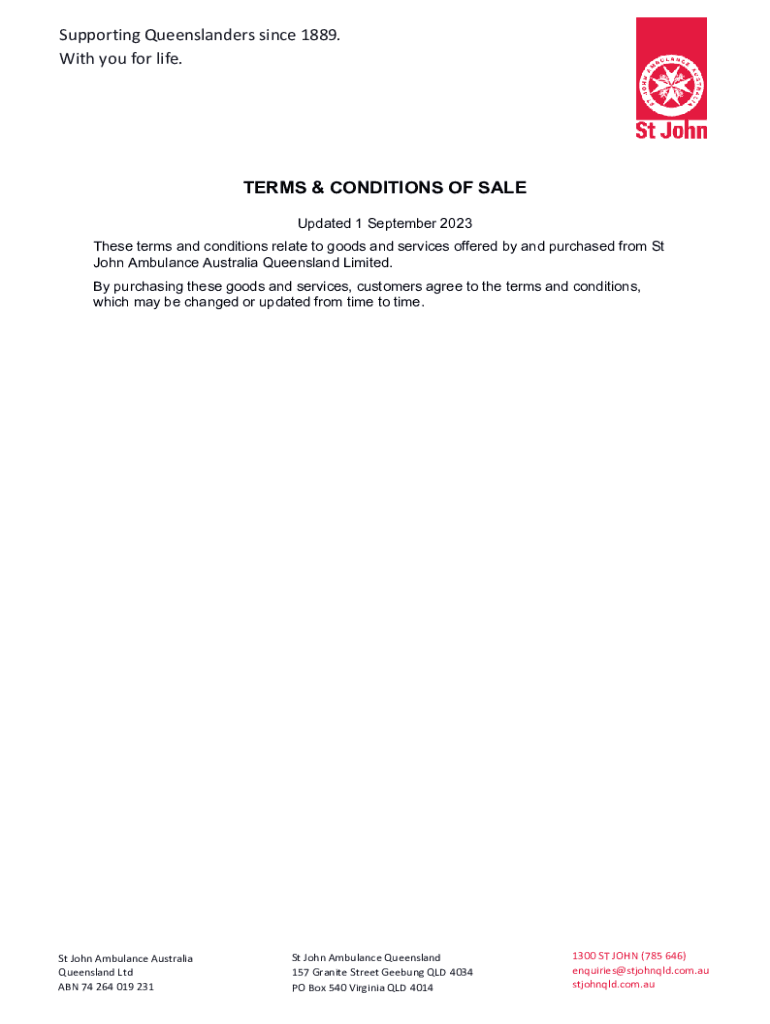 Supporting Queenslanders since 1889. With you for life.TERMS & CONDITIONS OF SALE Updated 1 September 2023 These terms and conditions relate to goods and services offered by and purchased from St