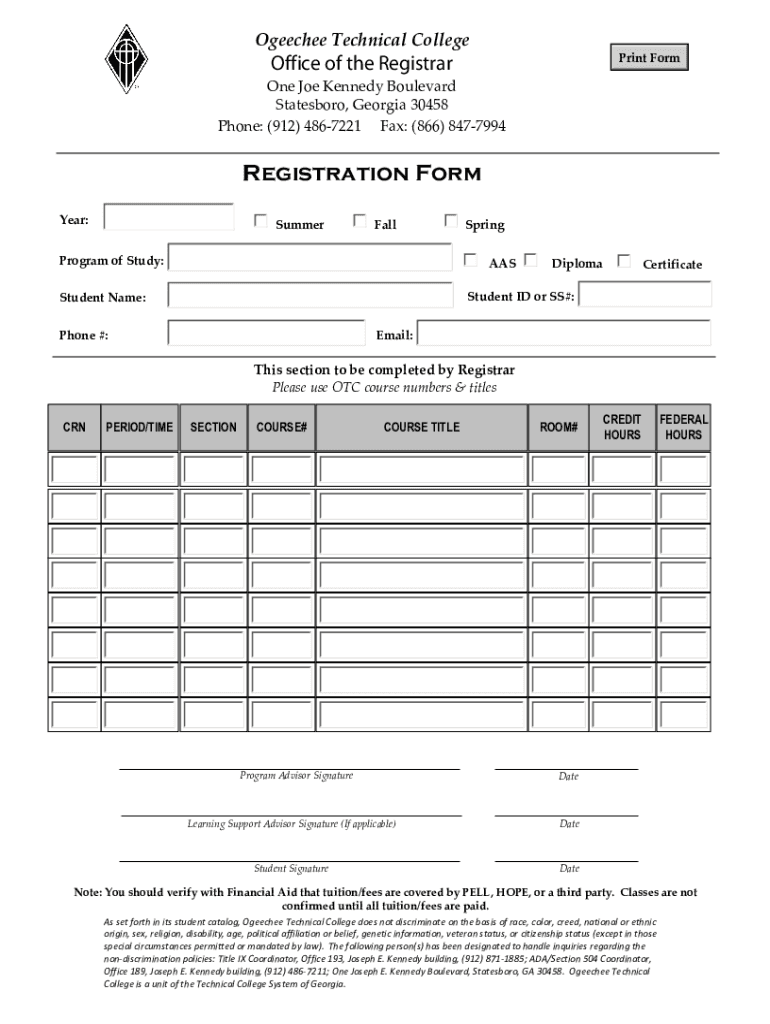 Ogeechee Technical College Registration Form 2017-2026 free printable template