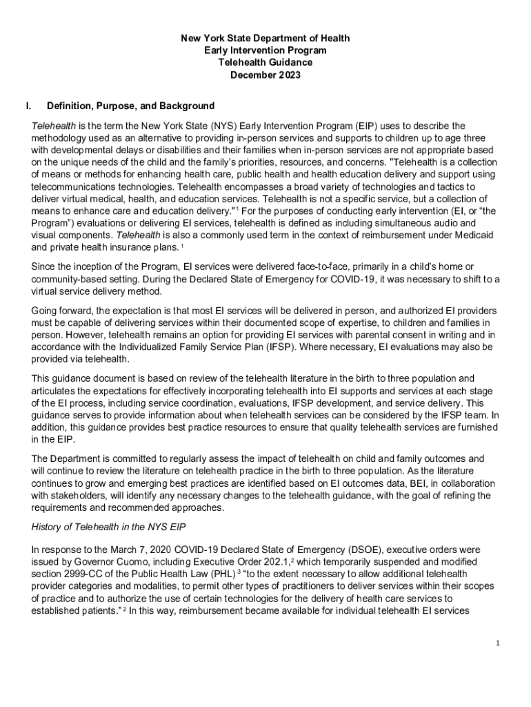 I. Definition, Purpose, and BackgroundTelehealth is the term the New York State (NYS) Early Intervention