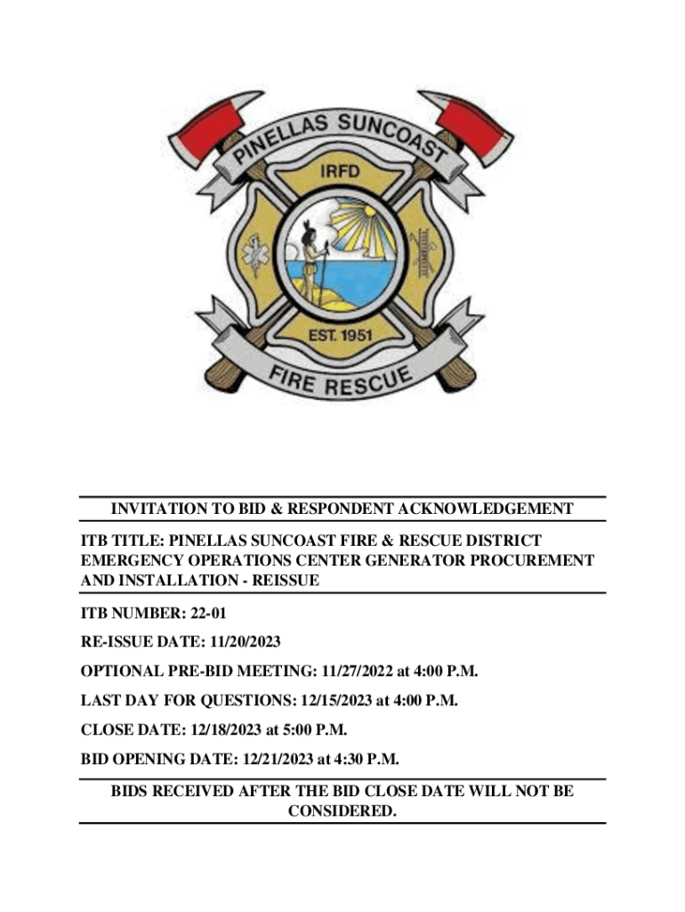ITB TITLE: PINELLAS SEACOAST FIRE & RESCUE DISTRICT