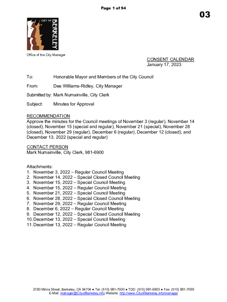 Get the free January 9, 2023 To: Honorable Mayor and Members of the ...