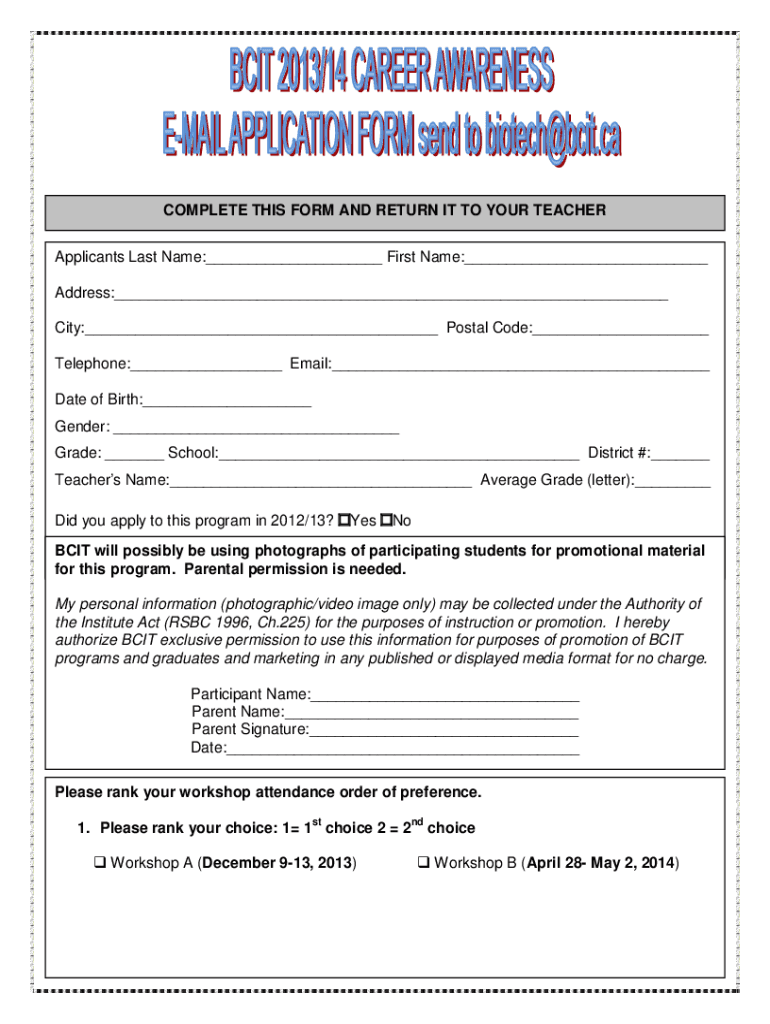 Application formWelcome to the thirteenth year of the Biotechnology Career Awareness Program.