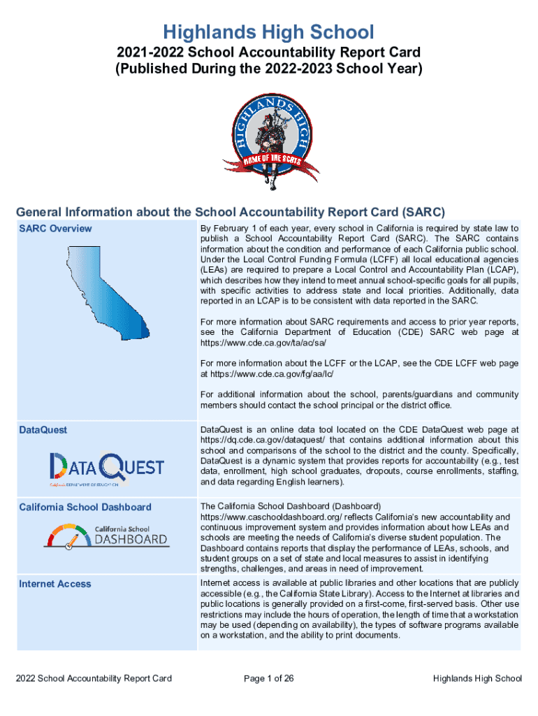 Get the free SARC - School Accountability Report Card - Highland High ...