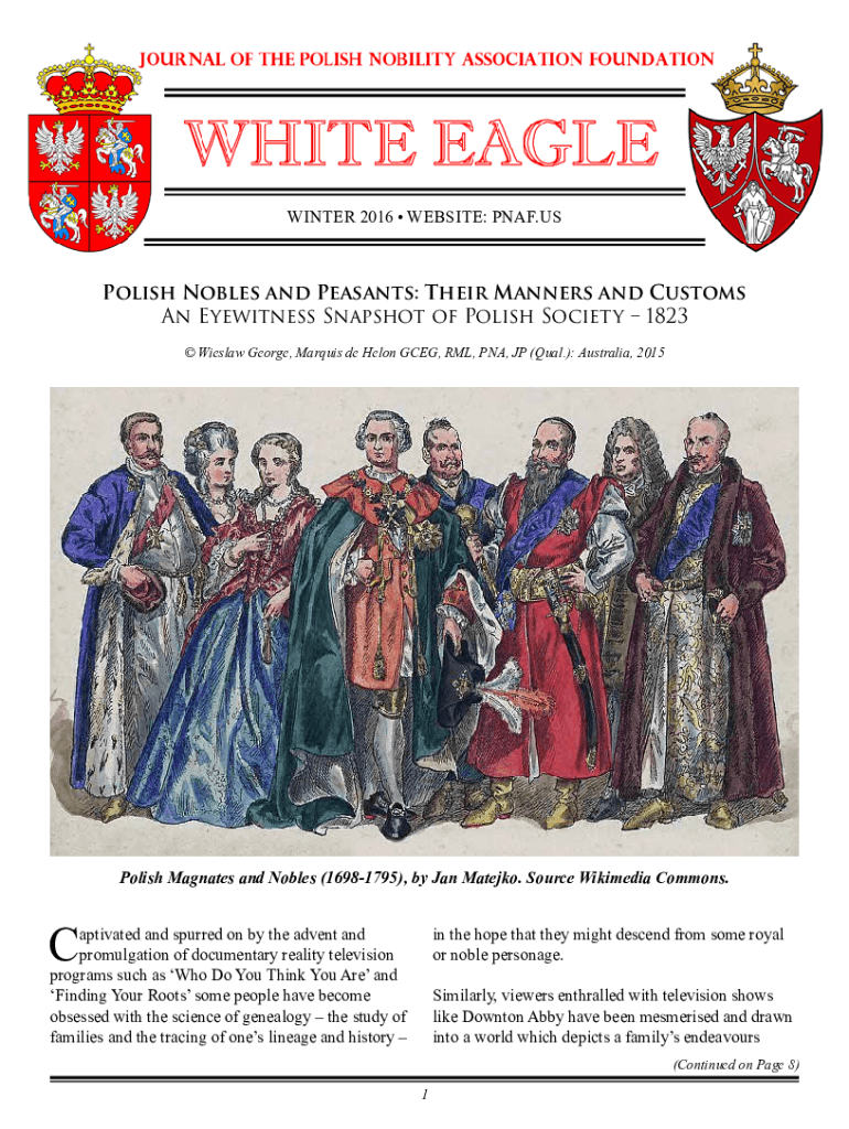 WINTER 2016 WEBSITE: PNAF.USPolish Nobles and Peasants: Their Manners and Customs An Eyewitness Snapshot of Polish Society 1823 Wieslaw George, Marquis de Helon GCEG, RML, PNA, JP (Qual.): Australia,