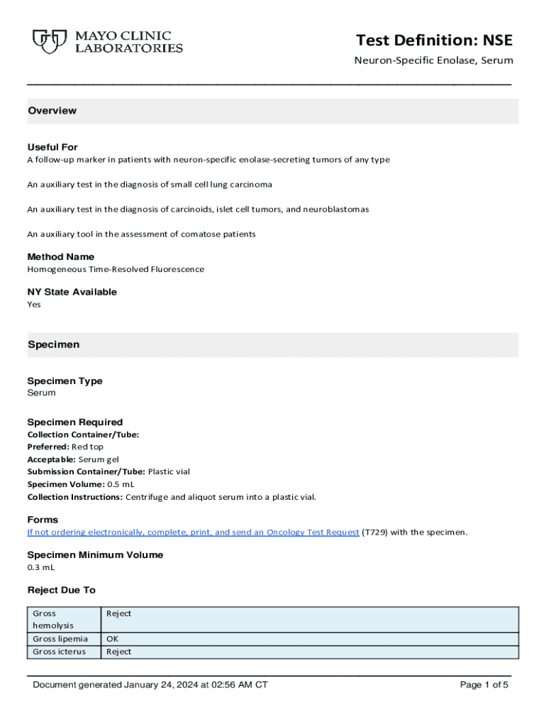 Get the free Neuron-Specific Enolase, Serum - Mayo Clinic Laboratories