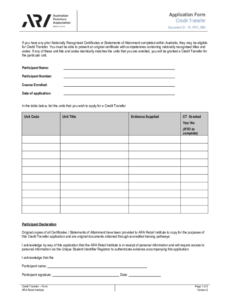 Document ID RI_RTO_006tIf you have any prior Nationally Recognized Certificates or Statements of Attainment completed within Australia, they may be eligible