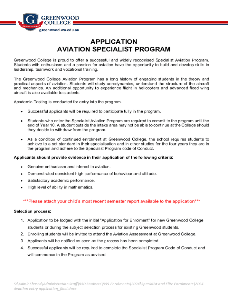 Edit your application aviation specialist program form online