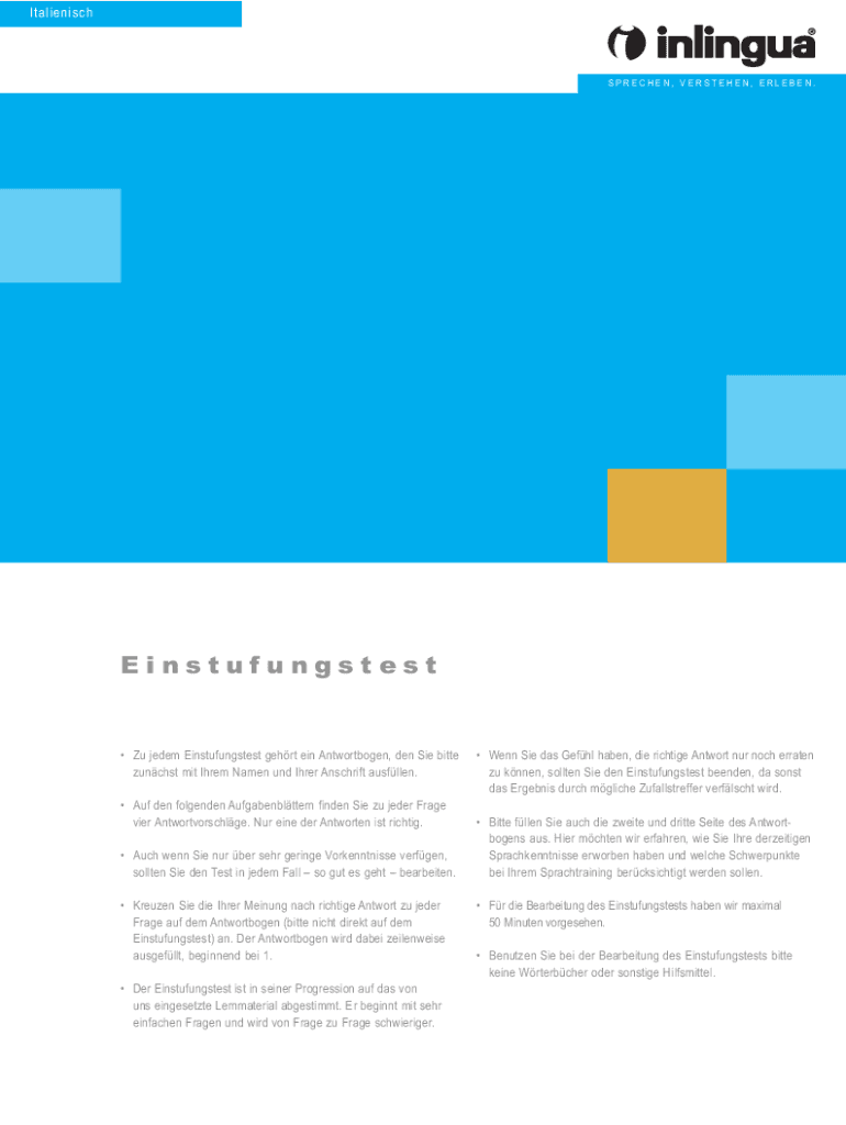 ItalienischSPRECHEN, VERSTEHEN, ERLEBEN.Einstufungstest Zu jedem Einstufungstest gehrt ein Antwortbogen, den Sie bitte zunchst mit Ihrem Namen und Ihrer Anschrift ausfllen. Auf den folgenden Aufgabenblttern