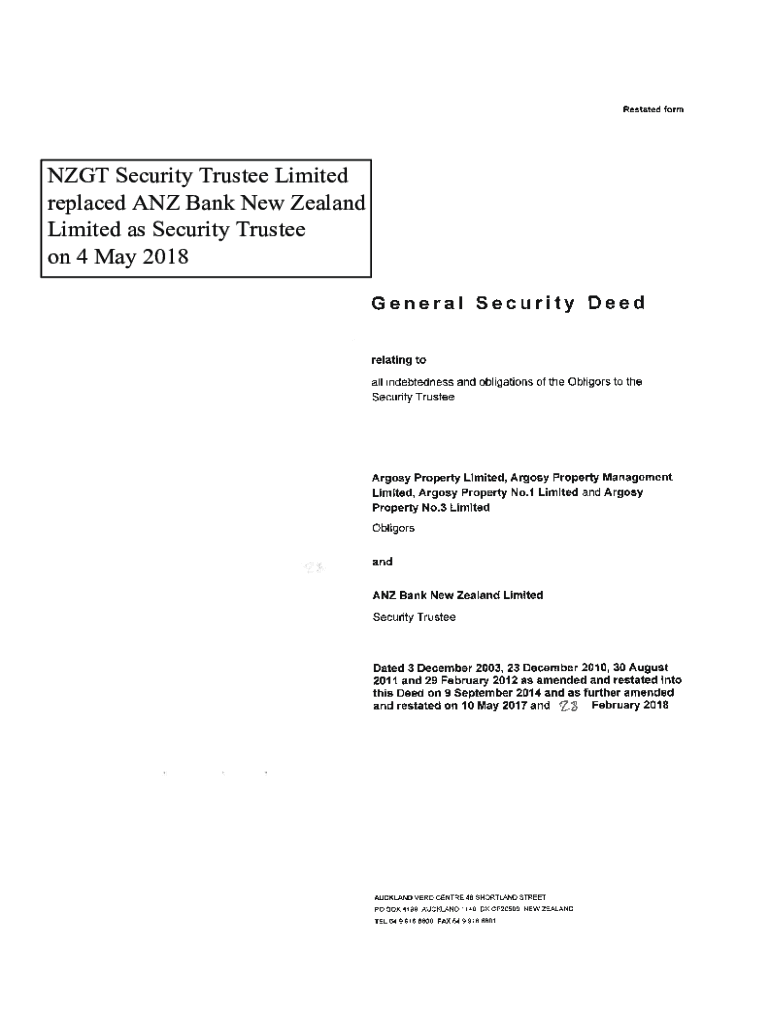 NZGT Security Trustee Limited replaced ANZ Bank New Zealand Limited as Security Trustee on 4 May 2018Contents1.Interpretation .................................................................................................................12.Covenant