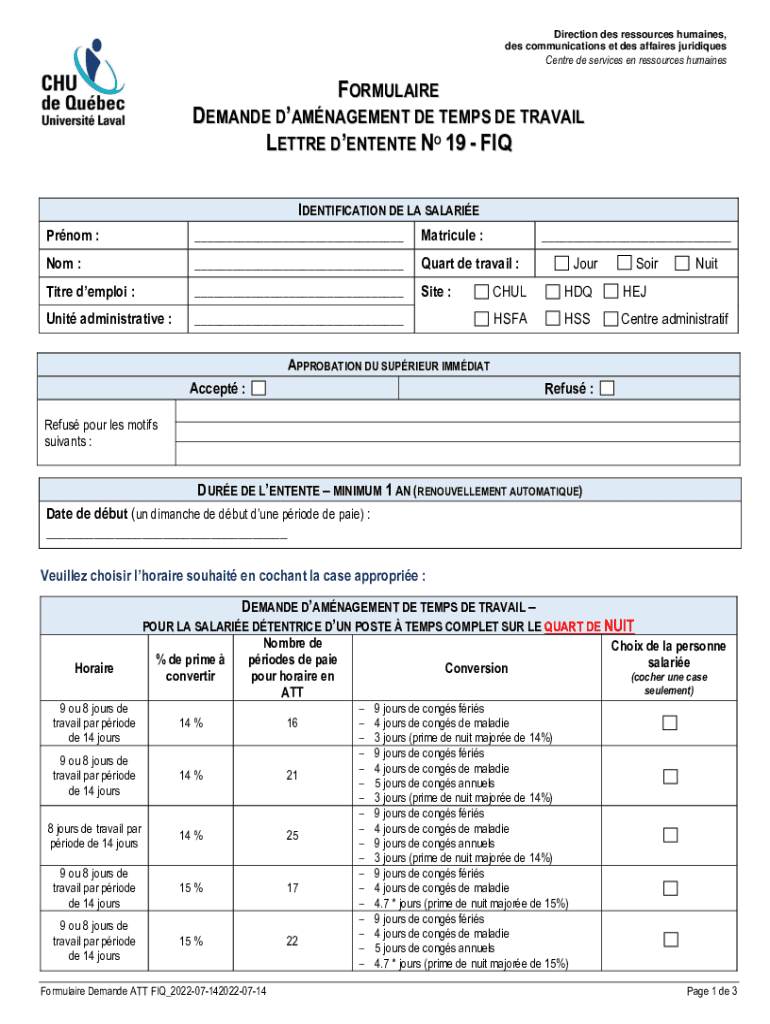 DES communications et DES affairs juridiquesCentre de services en resources humainesFORMULAIREDEMANDE MANAGEMENT DE TEMPS DE TRAVAIL