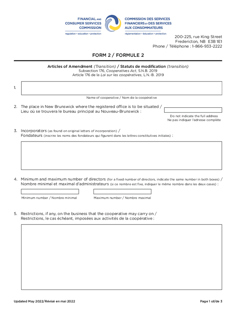 Obtenir le gratuit Form 2 Articles of Amendment - Statuts de modification - transition