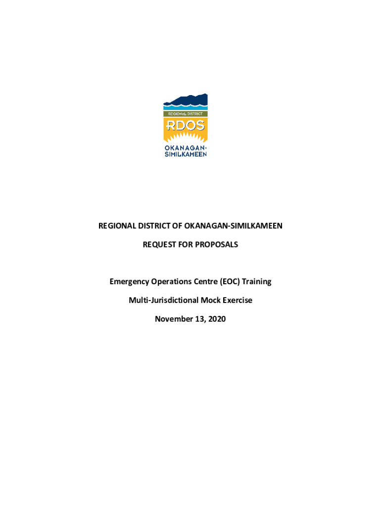 REGIONAL DISTRICT OF OKANAGANSIMILKAMEEN REQUEST FOR PROPOSALSEmergency Operations Centre (EOC) Training MultiJurisdictional Mock Exercise November 13, 2020REGIONAL DISTRICT OF OKANAGANSIMILKAMEEN