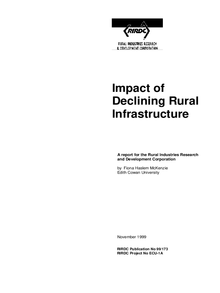 Impact of Declining Rural InfrastructureA report for the Rural Industries Research and Development Corporation by Fiona Haslem McKenzie Edith Cowan UniversityNovember 1999 RIRDC Publication No 99/173