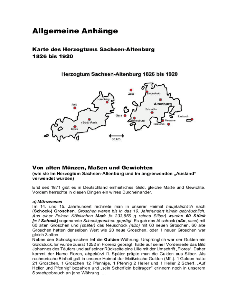 Allgemeine Anhnge Karte des Herzogtums SachsenAltenburg 1826 bis 1920Von alten Mnzen, Maen und Gewichten (wie sie im Herzogtum SachsenAltenburg und im angrenzenden Ausland verwendet wurden) Erst seit