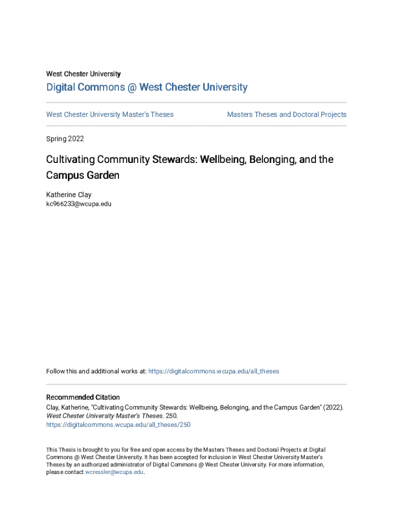 West Chester University Masters Theses Masters Theses and Doctoral ProjectsSpring 2022Cultivating Community Stewards: Wellbeing, Belonging,