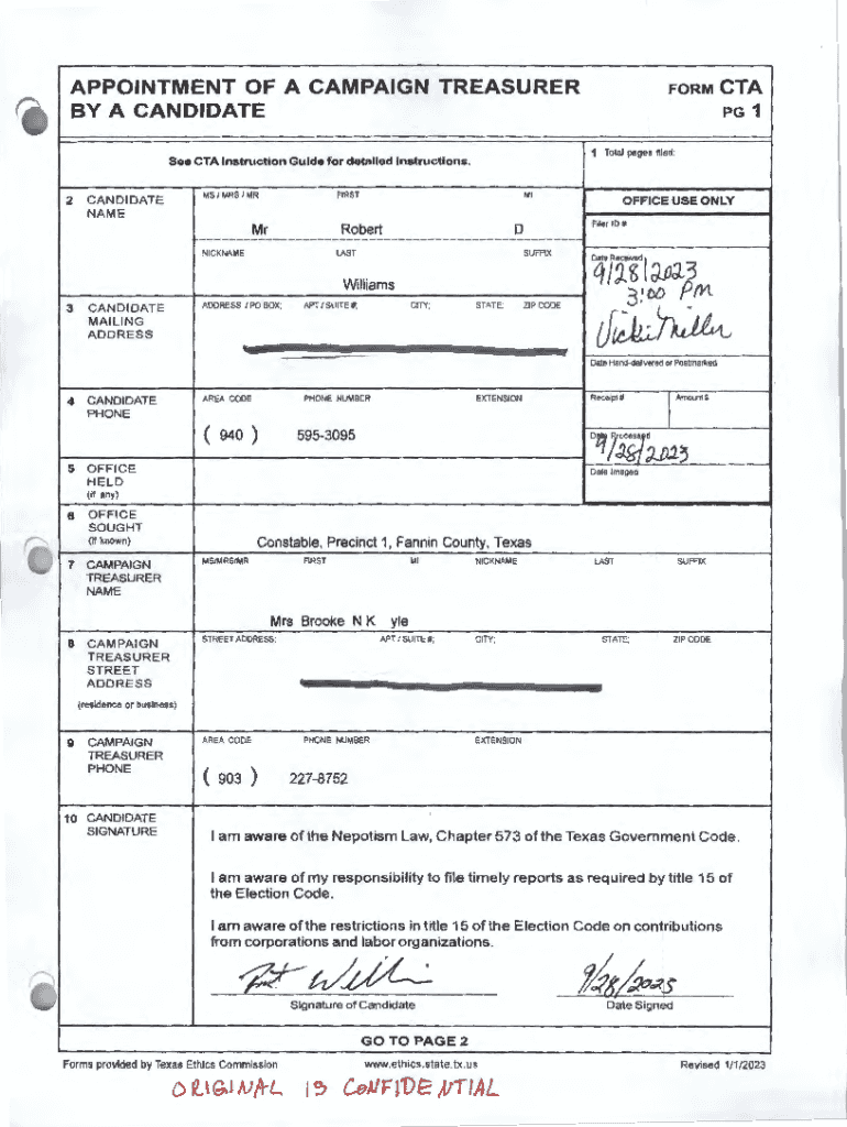 APPOINTMENT OF A CAMPAIGN TREASURER